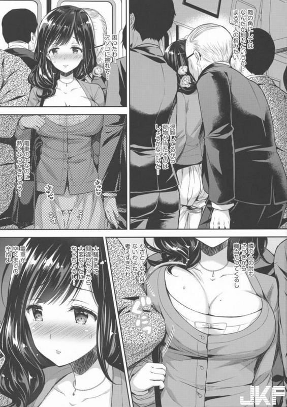 夫が海外出张で欲求不満気味だった人妻さん、电车内で痴汉に囲まれてしまう・・・